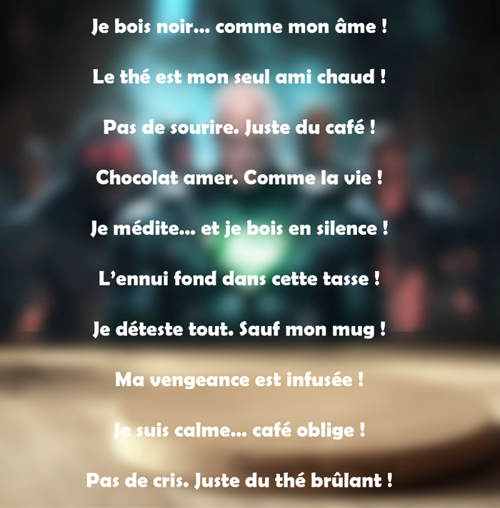 Un mug unique à votre image, conçu pour refléter votre style, votre force ou votre côté mystérieux. Un cadeau original ou un objet personnel qui accompagne vos aventures du quotidien, quel que soit l’univers choisi.